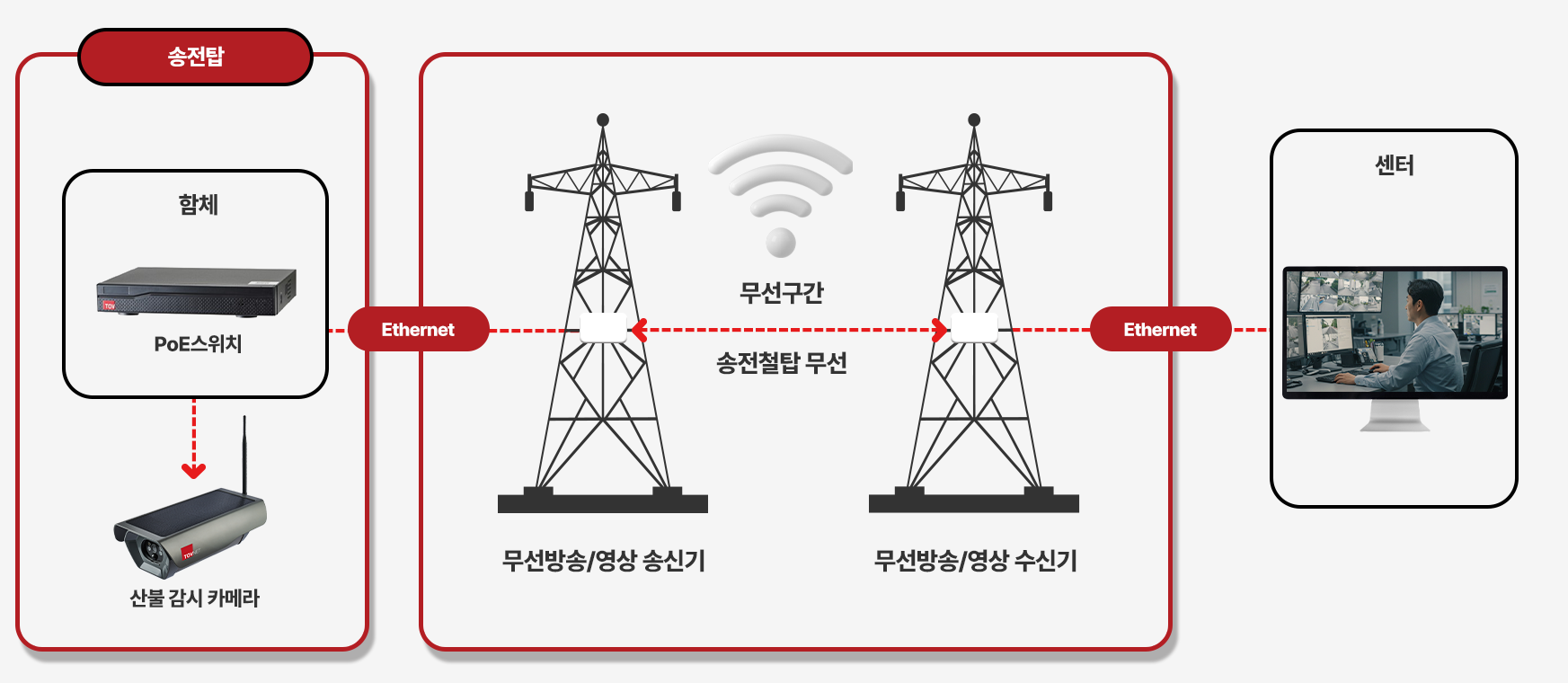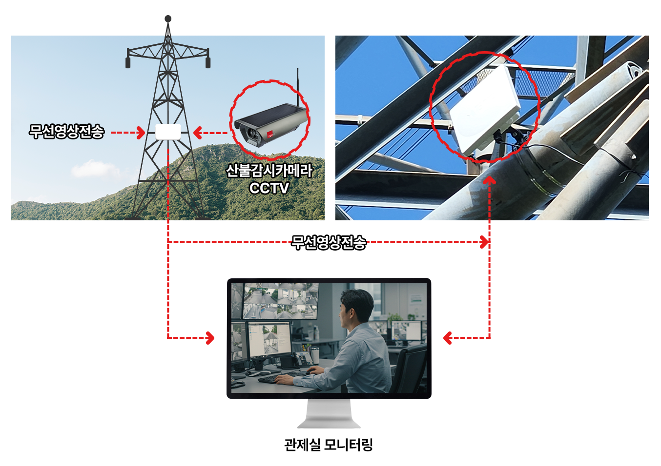 송전 철탑을 활용한 산불 감시 CCTV 무선 장거리 전송